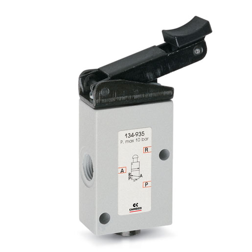 Las válvulas manuales Serie 3 (G1/8) y Serie 4 (G1/4), 3/2, 5/2 y 5/3 vías están disponibles con varios dispositivos diseñados para satisfacer diferentes necesidades. La Serie 1 ofrece dos dispositivos: botón operador (3/2 vías) y palanca (3/2 y 5/2 vías). Las válvulas Serie VMS son tio corredera 3/2 vías, las cuales están disponibles con puertos M5, G1/8, G1/4, G3/8, G1/2 y G3/4. Las válvulas 3/2 vías Series 3 y 4 son normalmente cerradas cuando la alimentación del aire es por 1, y pueden ser normalmente abiertas cuando es por 3. Lás válvulas Series 3 y 4, 5/2 vías pueden ser alimentadas vía puertos 3 y 5 con dos diferentes presiones, en caso que un cilindro tenga que ser operado con la presión de avance diferente de la presión de retorno. Nombre de la Serie 1, Restablecimiento Digital monoestable, Puertos G1/4 Funcionamiento, 3/2 vías NC Horario de trabajo